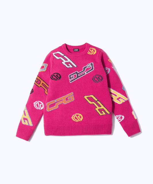 【Sample】クルーネックロゴ柄ニットプルオーバー